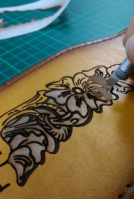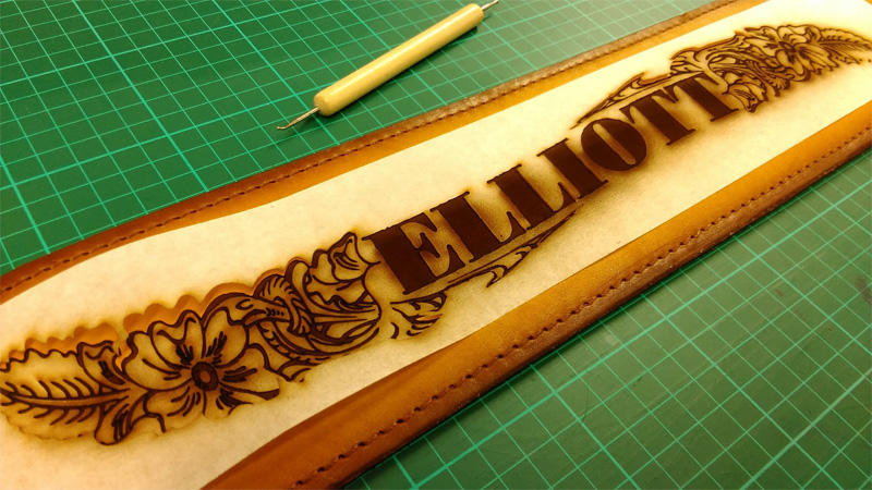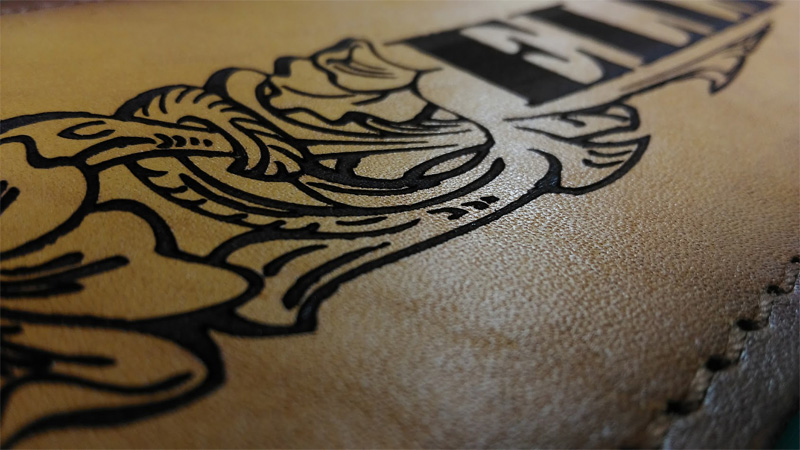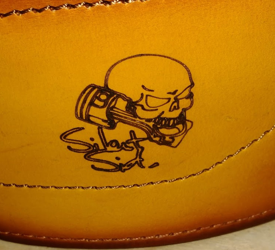 Below is a quick overview of the processes involved in creating that special look on your leather. Our customer wanted something unique to give as a present so we worked together to design what you see below. The design involved pencils, pens and a helping hand from the boy 'Tocsick' down at Relm Design with some Adobe Illustrator magic (way beyond my skill set!)
