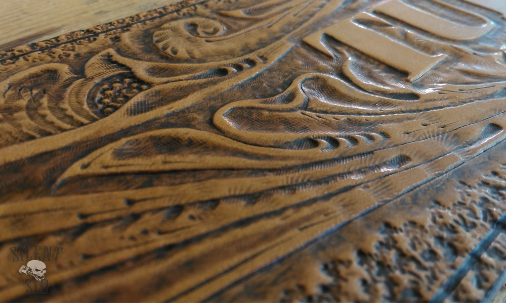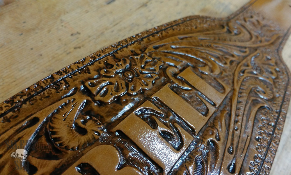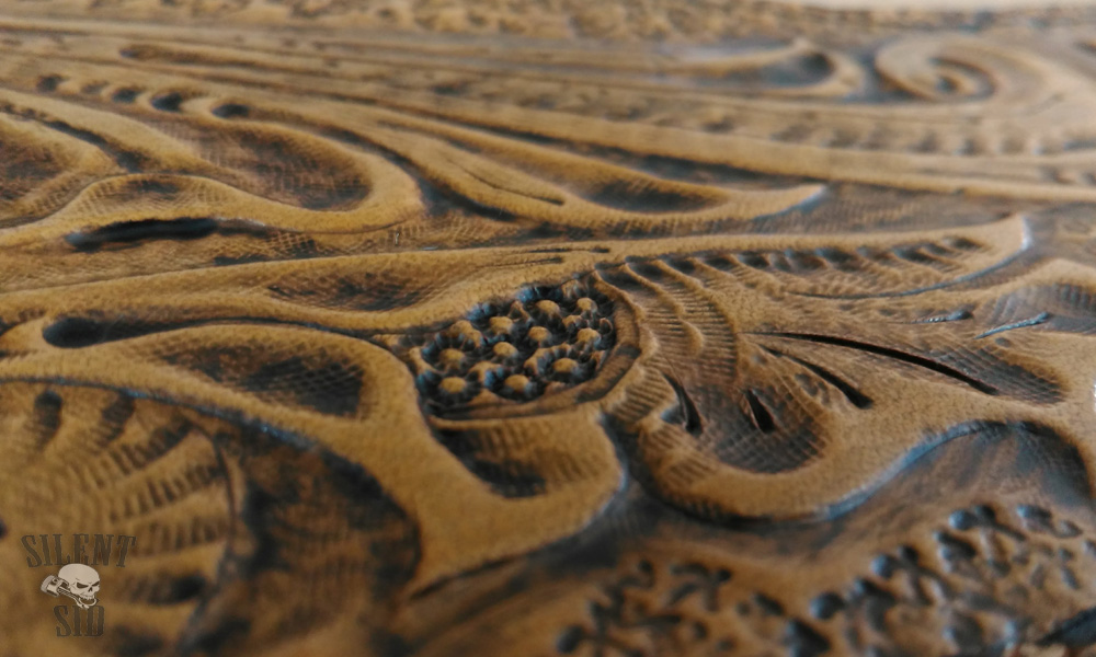 Sheridan design leather carving is a real 'Top Shelf' item. Nothing screams handcrafted like a Sheridan pattern on display. Non of these embossed, ready made things that find there way onto the market and get sold as 'authentic' design leather come anywhere near - these are nothing but VERY poor imitations of what take hours and hours (years and years) worth of practice and skill to be able to complete. Realy hand carved leather takes time and skill. Don't be tempted, people who know will see straight through the nasty, cheap copy stuff.