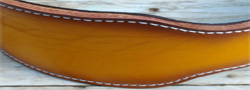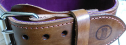 All of our Weight Belts are hand cut from 4-6mm Veg Tanned leather hides with 2.5mm Chaps suede inner lining. Nearly all of our belts are made to order and therefore you choose which of our dye colours, lining colours and even stitch designs you'd like use to put together for you. Special requests like double stitching, etc can also be catered for at this stage. We can even do a Sheridan style carved belt - see here for an example. Any questions? get in touch.